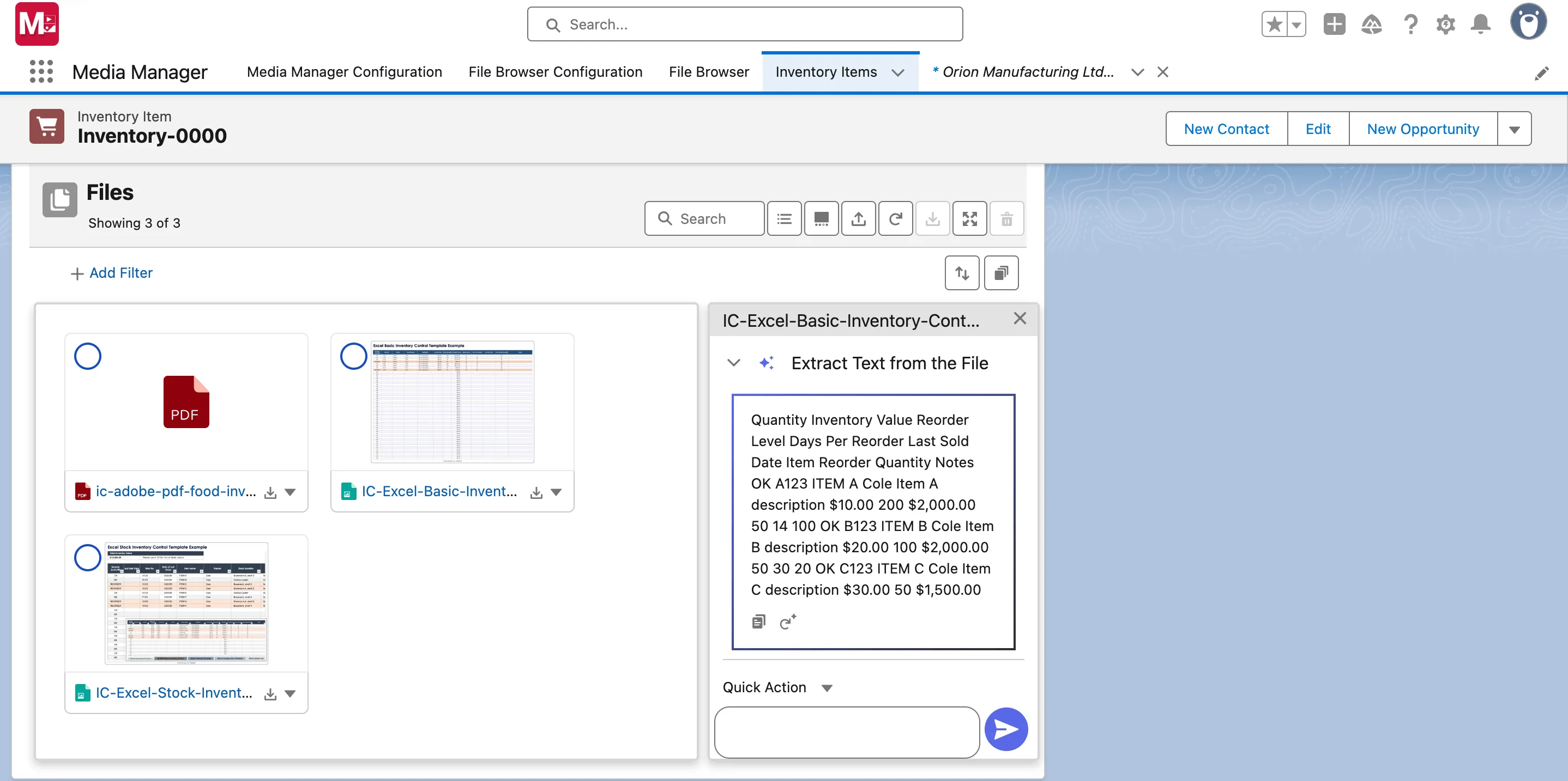 Delivered through Media Manager row actions and Salesforce Flow, FileMate applies AI directly on supplier docs and inventory files: