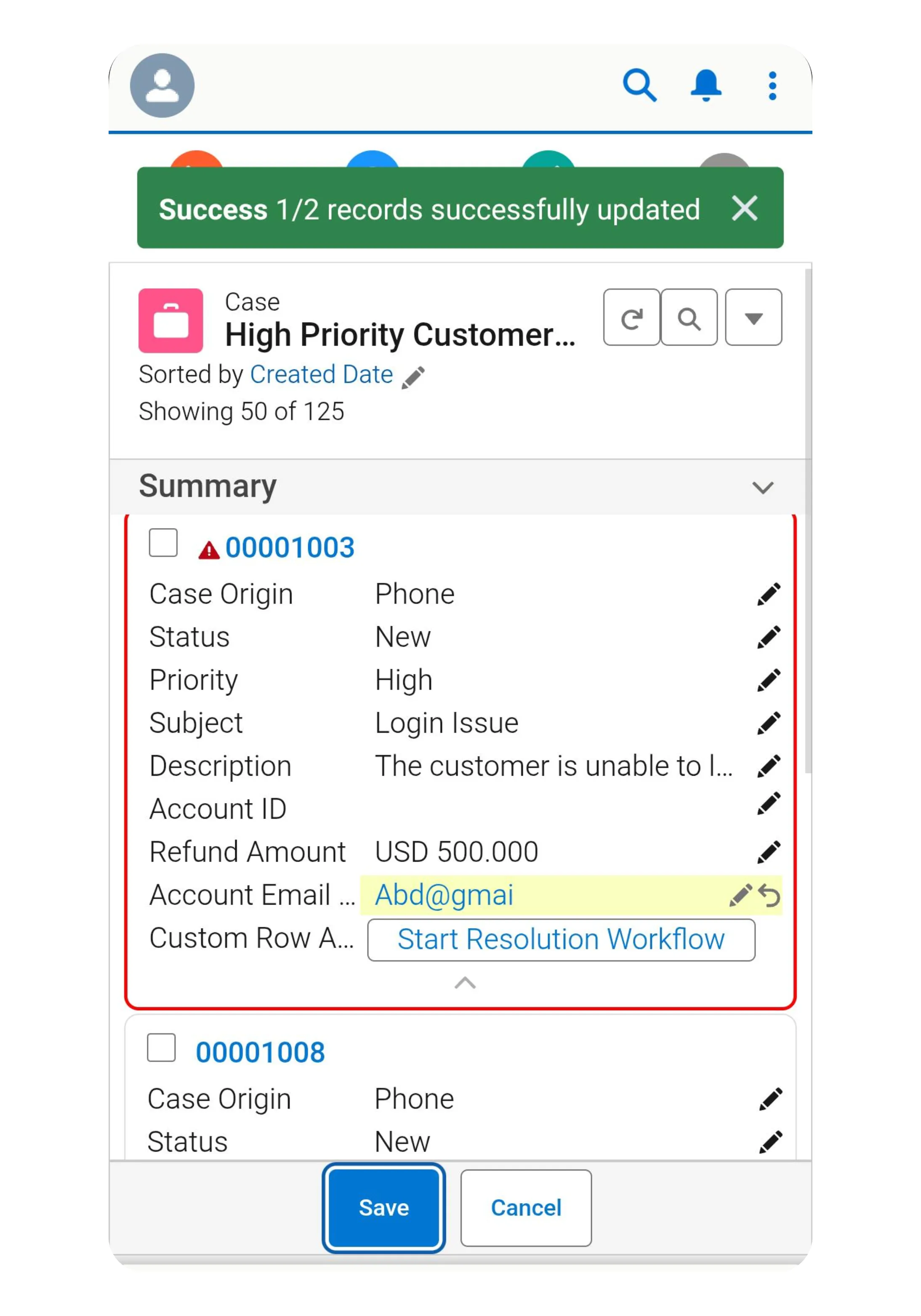 Standard Salesforce mobile doesn’t allow inline edits or bulk record actions from related lists.