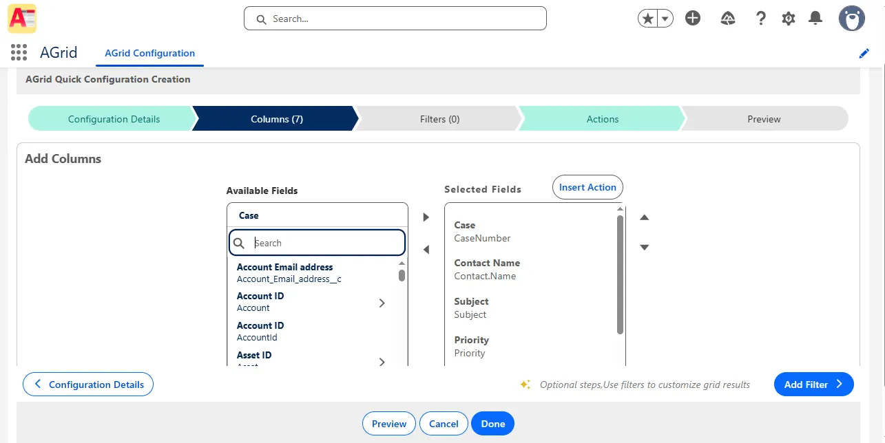 AGrid uses this selection to prefill the configuration context so you’re starting from an already defined Salesforce view.
