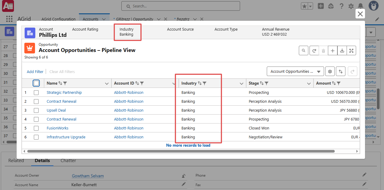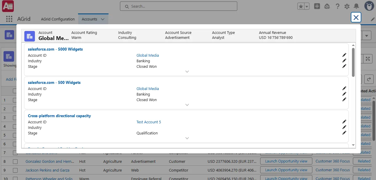 - With AGrid, you can launch Intelligent Related Lists that connect even unrelated objects.