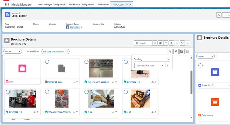 Custom folders help project teams and account managers keep content organized their way, while hierarchical folders let you mirror your business structure directly inside Salesforce. Combined with Group By, folders give users a familiar, intuitive way to manage files—especially in media‑heavy workflows.