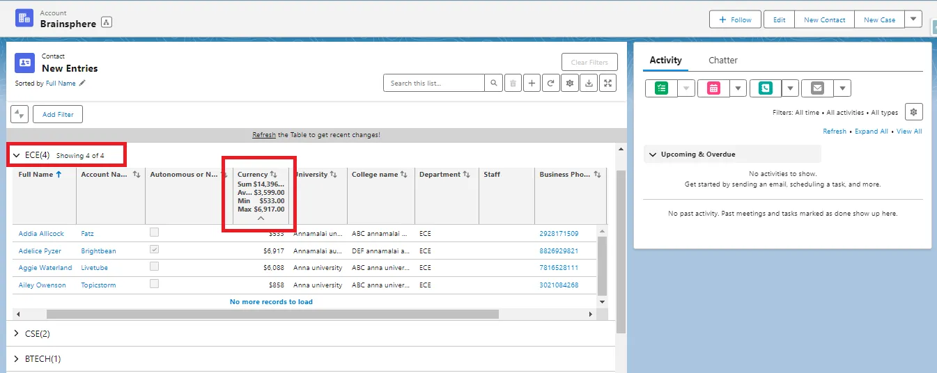 Our ‘Group By’ configuration gets a boost with a feature that allows users to view the summary of number fields even when the Group By field is enabled. When a field is grouped by let’s say Created Date field, you can now see the Amount fields, or any Number fields will now be summarized based on each date.