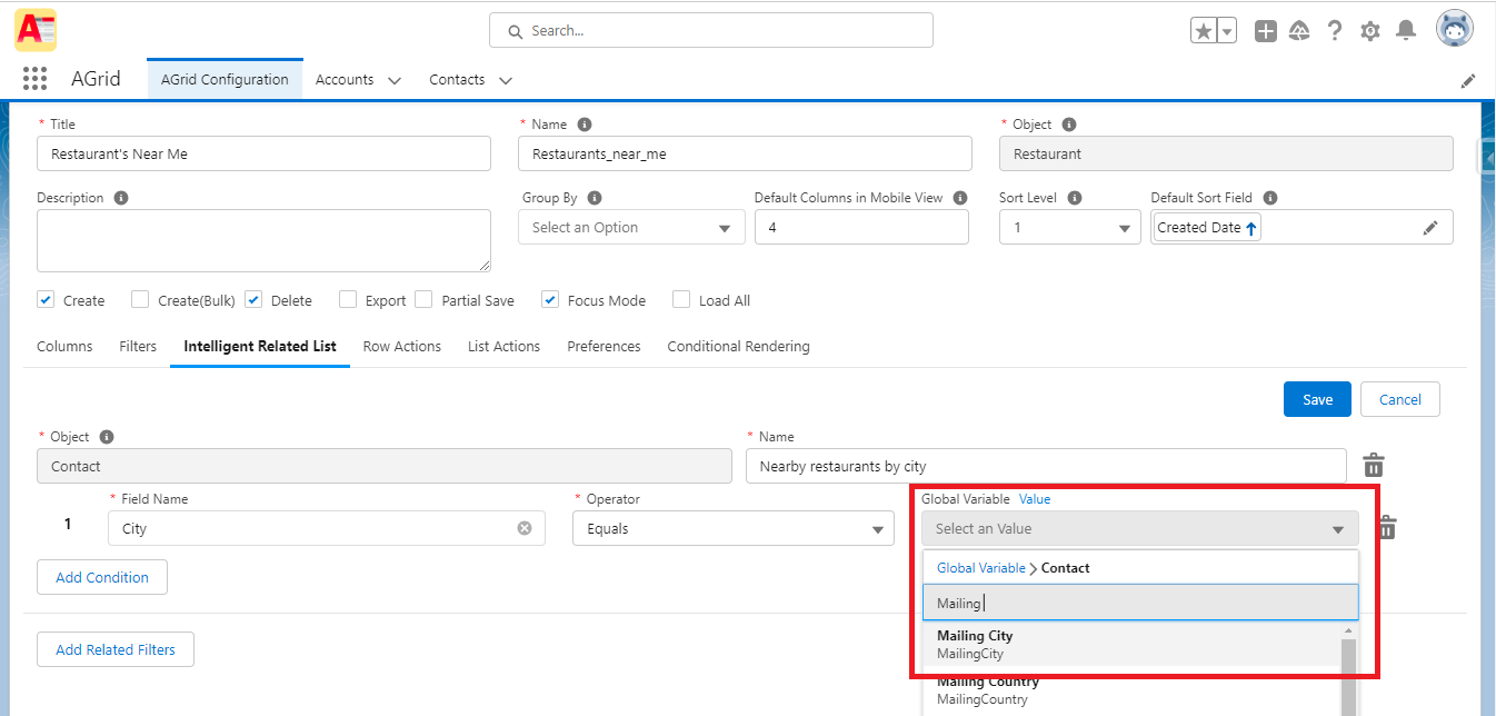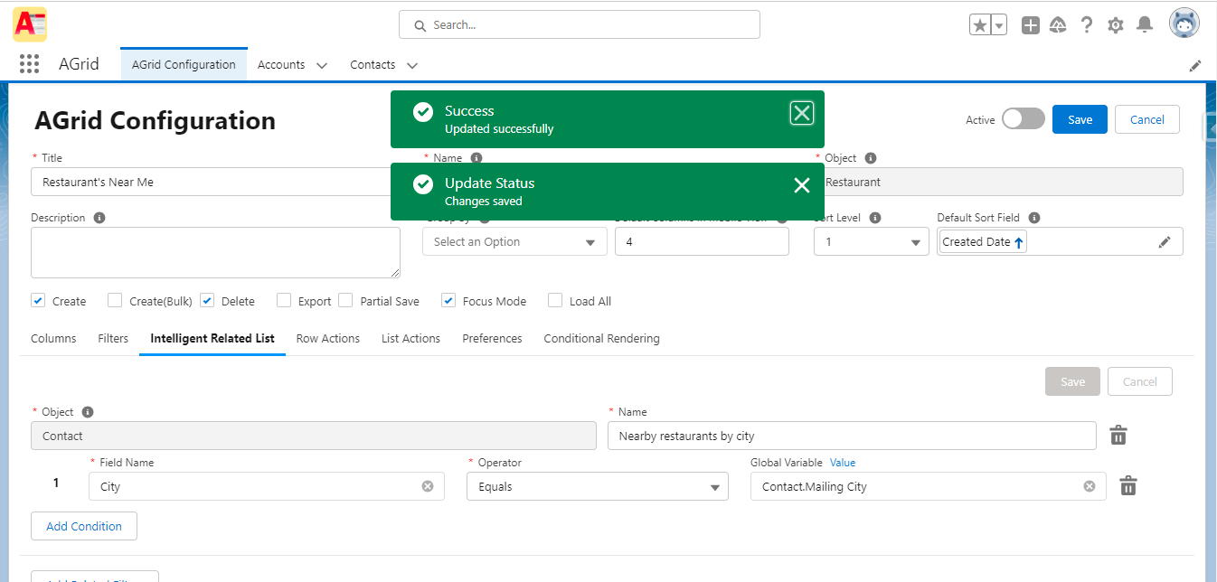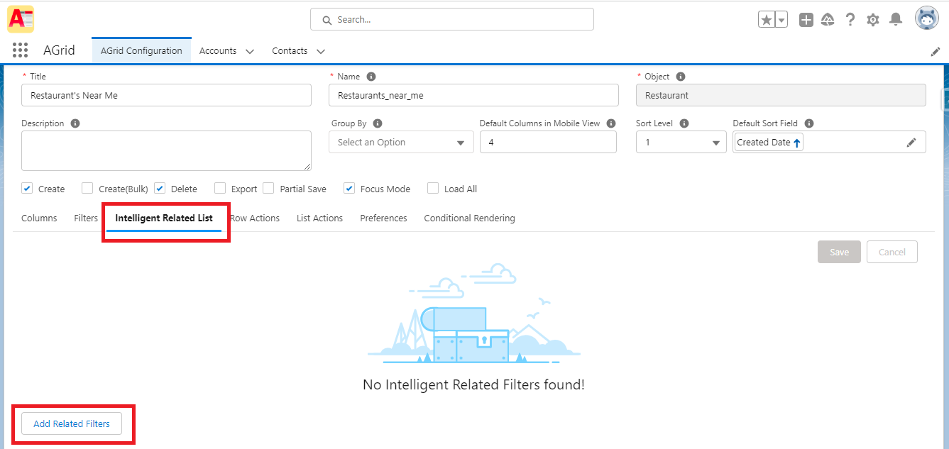 - Save Configurations: Preserve both Intelligent Related List and primary AGrid Configuration settings.
