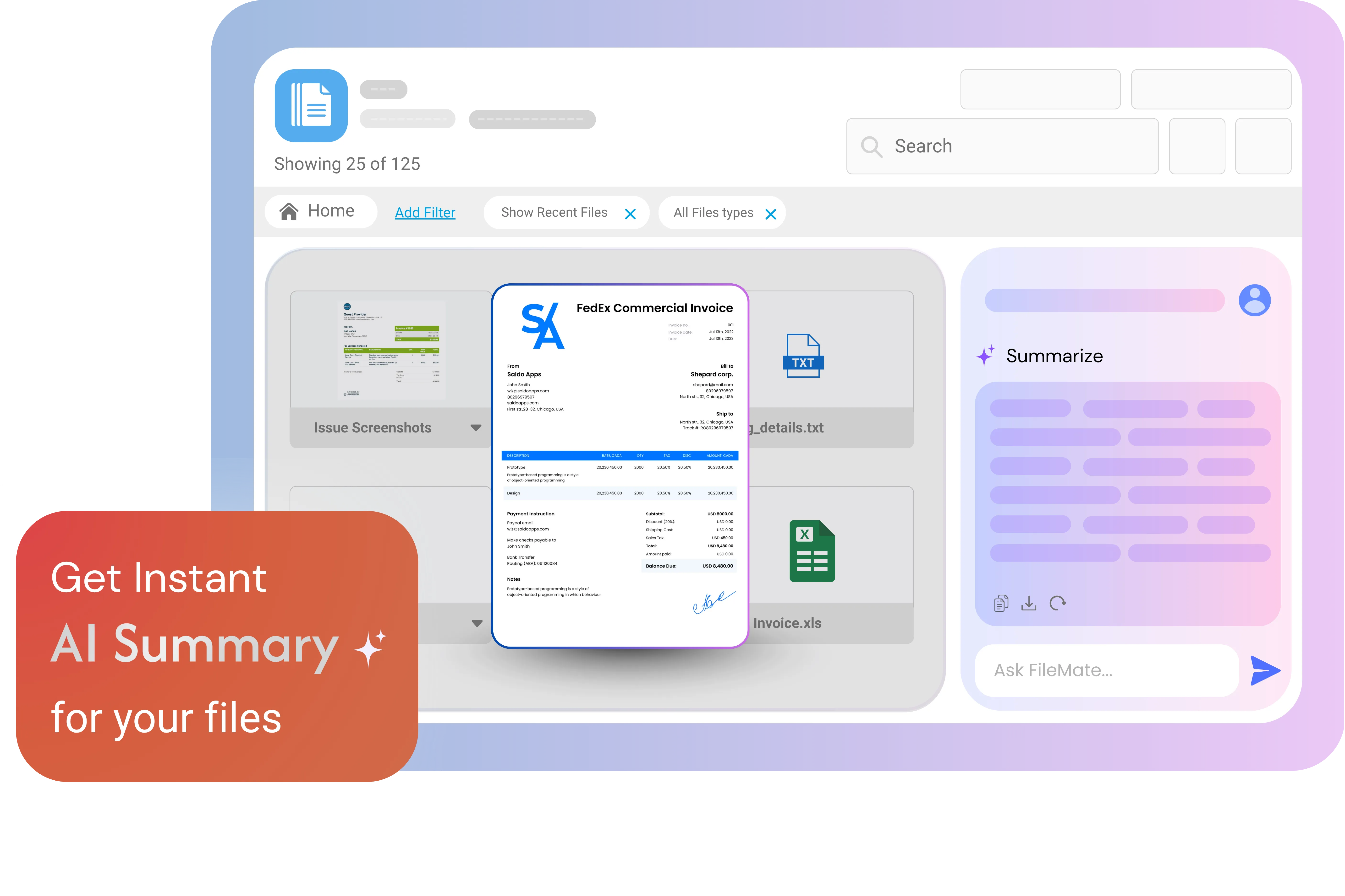 FileMate currently supports PDF and image files in PNG and JPEG formats. These formats can be analyzed for data extraction, summarization, translation even ask questions to your files directly within Salesforce. Support for additional file types may be introduced in future updates.